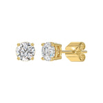 LADIES STUD EARRINGS 1CT ROUND DIAMOND 14K GOLD