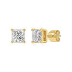 LADIES STUD EARRINGS 4CT PRINCESS DIAMOND 14K GOLD